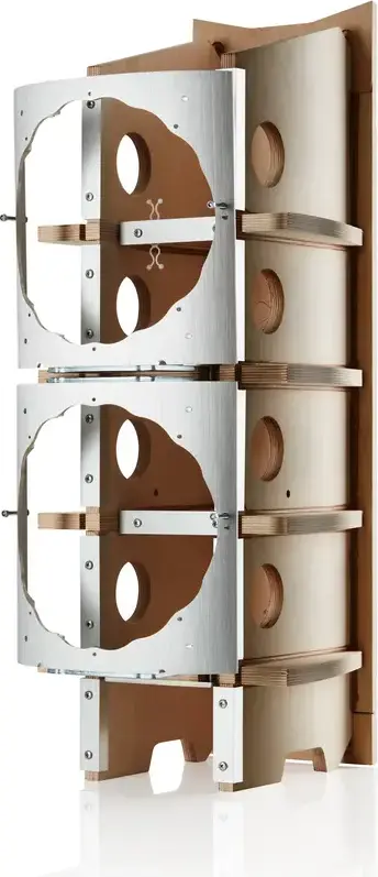 - 1 высокочастотный динамик с ромбовидным куполом диаметром 25 мм (1 дюйм), 1 среднечастотный динамик FST с конусом Continuum диаметром 130 мм (5 дюймов ), 2 низкочастотных динамика с диффузором с аэродинамическим диффузором диаметром 180 мм (7 дюймов)