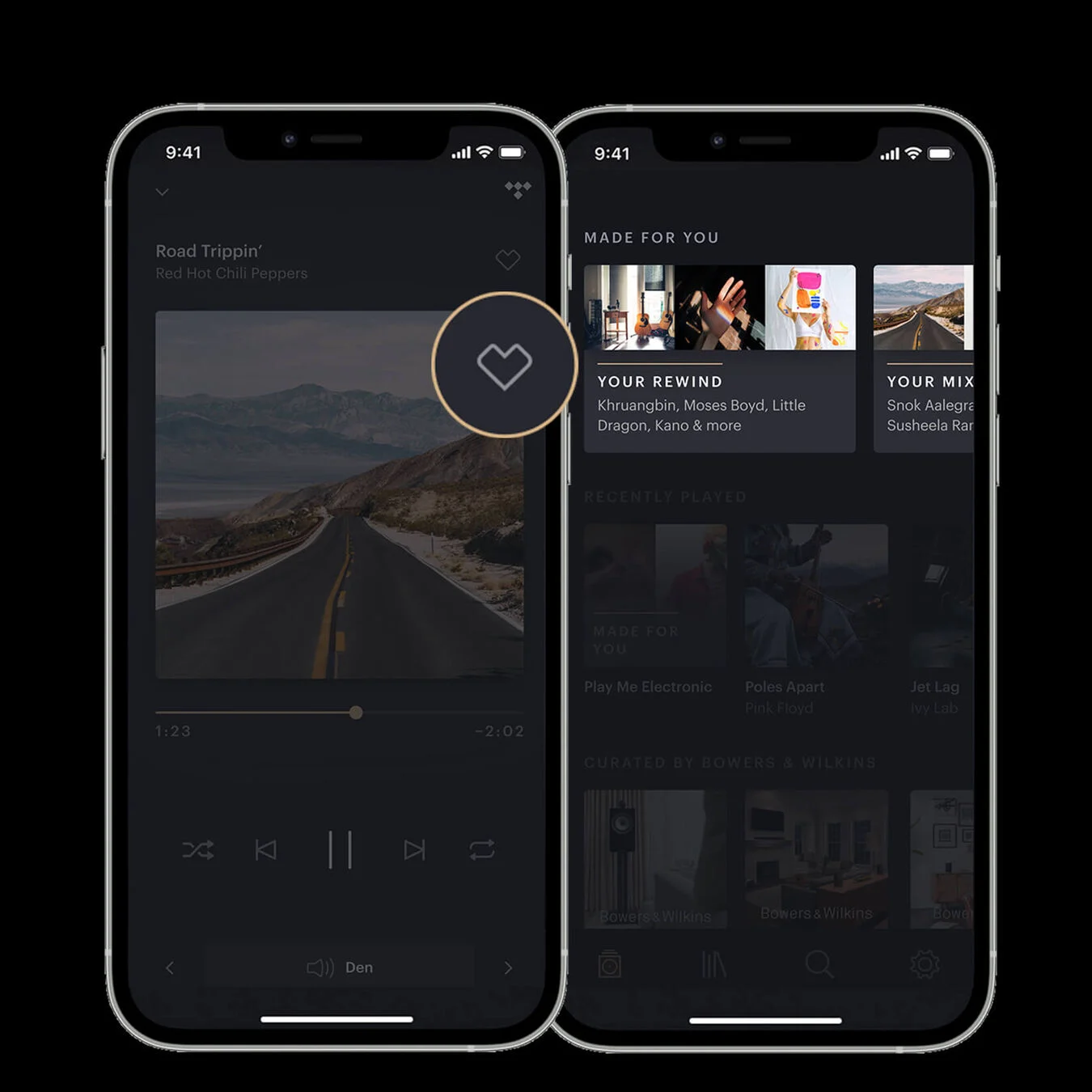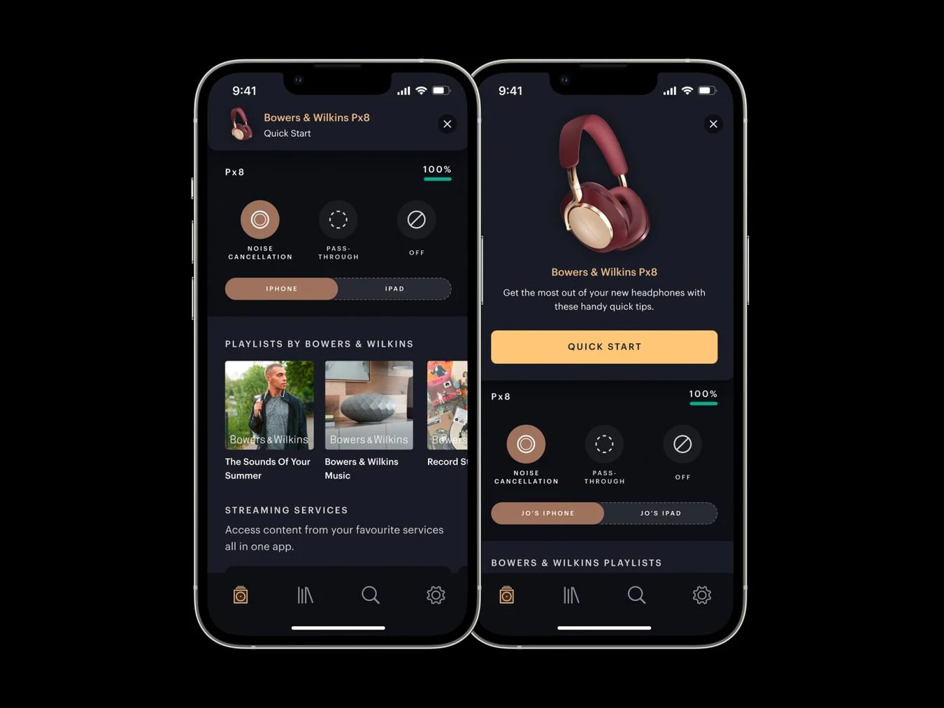 Приложение работает с последними наушниками Bowers & Wilkins. Потоковая передача музыки в высоком качестве прямо на ваши наушники через поддерживаемые сервисы.